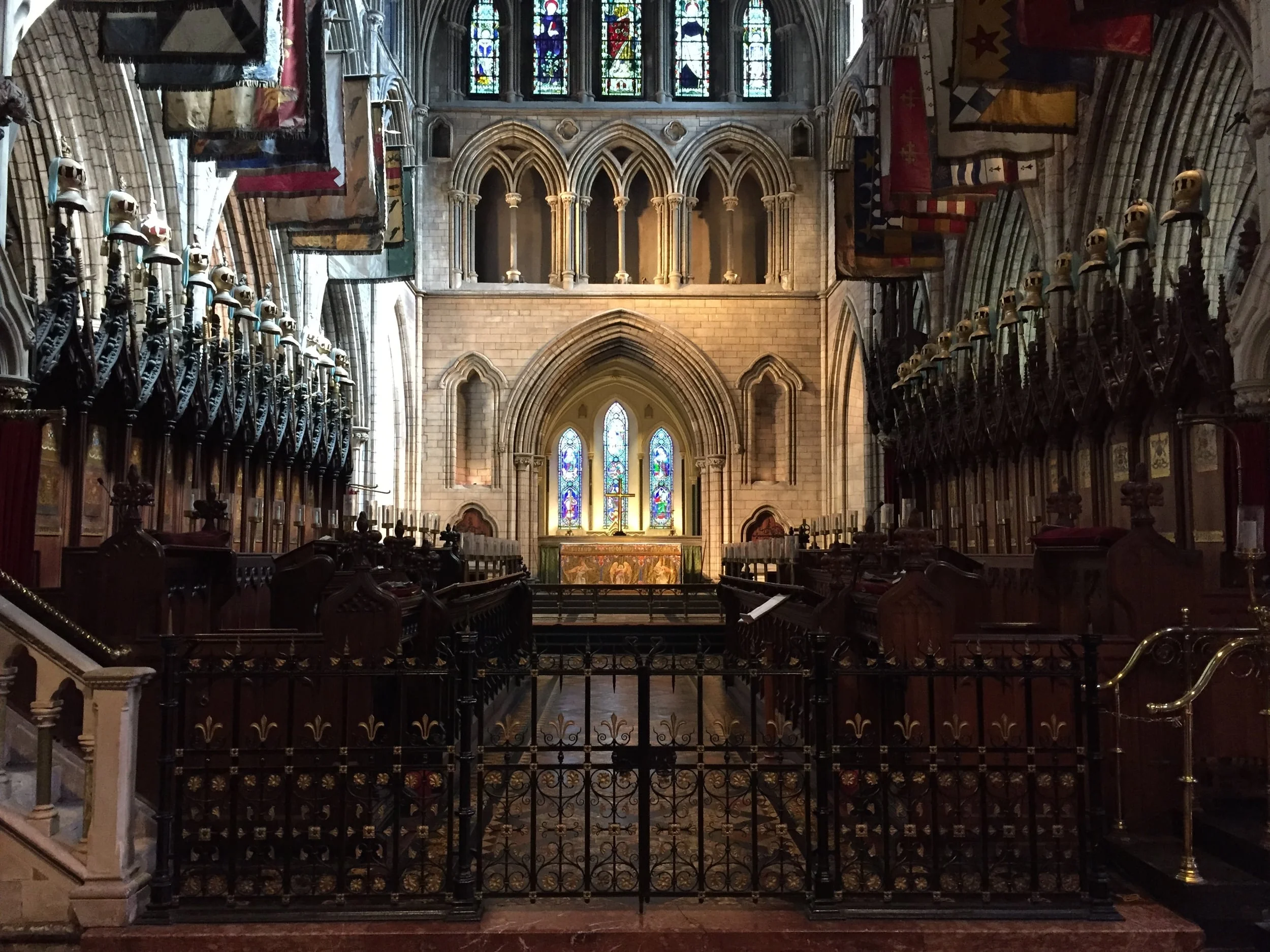 September 2015. Photos include John’s Lane Church, St Patrick's Cathedral, Dublin Castle, the River Liffey, and a pub.